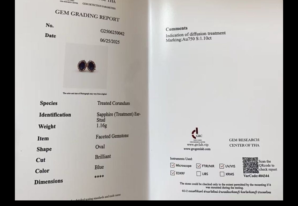 - Stein:Saphire 4x5mmx2,1.01ct,Royal blau